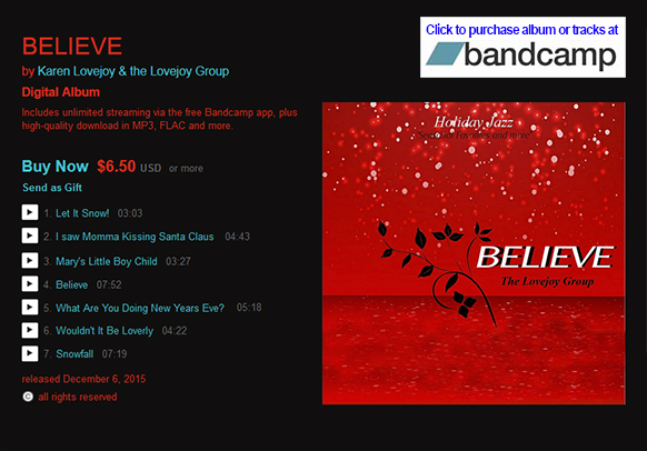 Listen to song samples... The Lovejoy Groups Home Grown Christmas Jazz album "Believe," available on BandCamp for album and track purchases. The Lovejoy Group's jazzy take on holiday favorites.